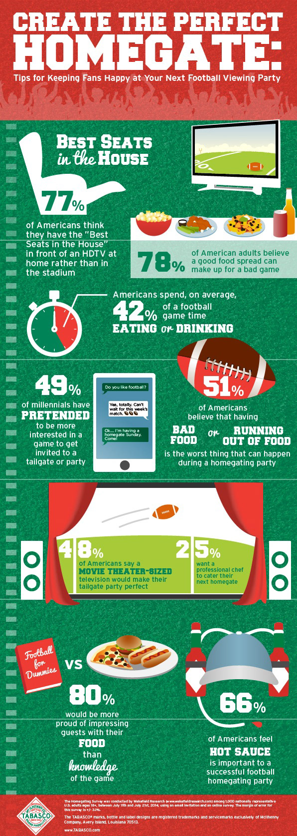 Infographic about the appeal of watching football at home as opposed to at the stadium a.k.a. homegating.